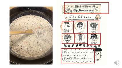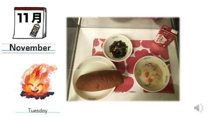 秋においしい「きのこ」が入ったクリームシチューです。給食では干ししいたけを使うことが多いですが今日は,生しいたけとエリンギが入ったクリームシチューです。