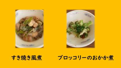 麩・糸こんにゃく・焼き豆腐に味がしっかりしみ込み白ねぎ・たまねぎの甘味が味わえたすき焼き風煮でした。