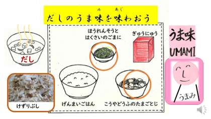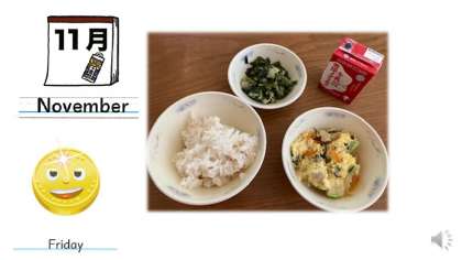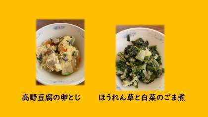 味がしみ込んだ高野豆腐をふわふわの卵でとじました。細ねぎの緑色と卵の黄色がとても彩よく仕上がりました。