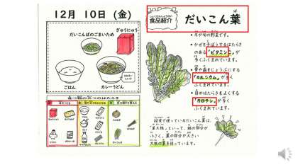 だいこん葉のシャキシャキとした食感を楽しみました。