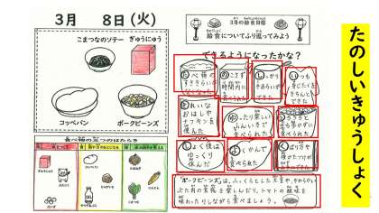 給食献立をみて,「楽しみな献立ばっかりやな〜」とつぶやいている児童がいました。