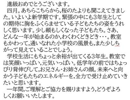 —年間,ご理解とご協力を賜りますよう,どうぞよろ