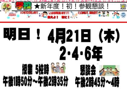 新年度初の授業参観,学級懇談会です!