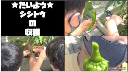 たいようのプランター農園で子どもたちが,シシトウの収穫をしていました!