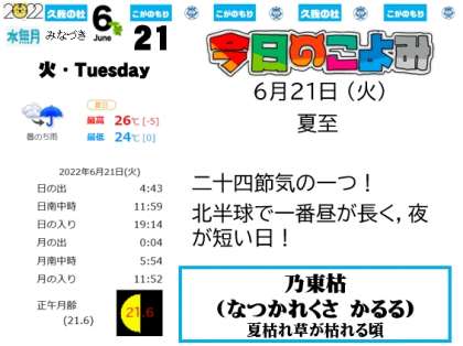 ◇ふ〜ん。昼の時間が,14時間31分ってのが,1年で一番長いのか〜。