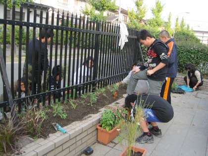 種をまいて,出た芽を黒ポットに植え替え苗を作りました。中間休みや昼休みに栽培委員会や6年生・5年生の人たちに手伝ってもらいコツコツ育てました。少し種をまく時期が遅かったので,まだ小さいのですが,今日花壇に植え替えました。花育の先生方に教えていただいた植え方でがんばりました。春になるのが楽しみです。