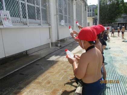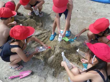 今日は、生活科の「みずやすなとあそぼう」の学習をしました。