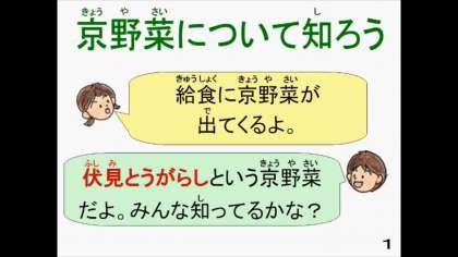 今日の給食ビデオでは,伏見とうがらしについてお届けしました。