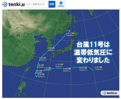 台風11号(ヒンナムノー)は、9月6日(火)21時に日本海で温帯低気圧に変わりました!