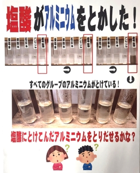 塩酸の中で、アルミニウムがとけきるまでを観察することができませんでした。