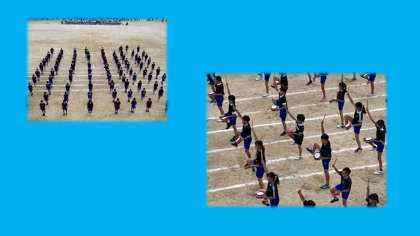 全学年揃った黒Tシャツと、手作りの太鼓がとても映えていました。
