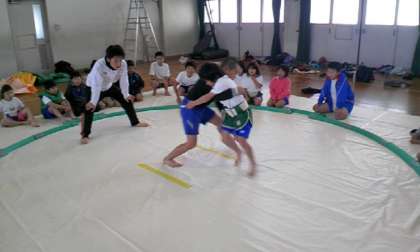 練習の最後に団体戦をしました。後期から始めた子どもたちも,だんだんと試合や部員たちにも慣れ,力一杯の相撲を取ることができていました。