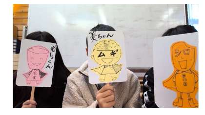 キャラクターの力を借りながら、麦ちゃんパワーについてや、配り切れずに残っているごはんのフードロスをなくすための一口運動について紹介してくれました。