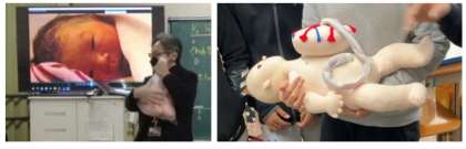 動画を視聴した後に,赤ちゃん人形をひとりひとりに抱いてもらいました。