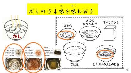今日の給食は、2種類のだしのうま味を生かした献立でした。