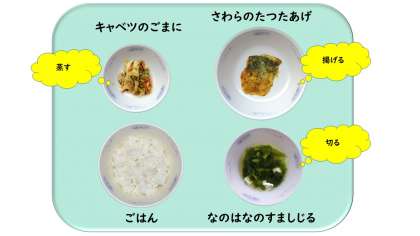 キャベツの芯は固いので、みんなが食べやすいように切っていることを教えていただきました。