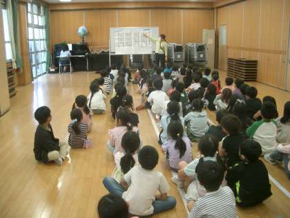 音楽の学習で、学年全体で集まって歌を歌いました。