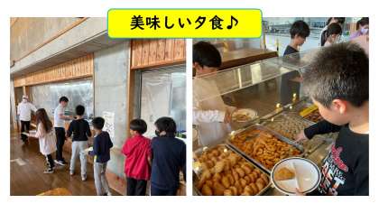 お風呂が終わり、夕食です!豪華な料理に大興奮!!
