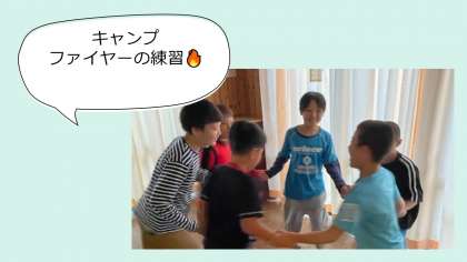 部屋を暗くして、キャンプファイヤーの練習をしている部屋も、、、