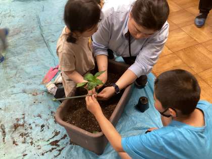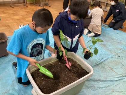 宮崎県の農家さんのお話を聞いて、ピーマンの苗を植えました。