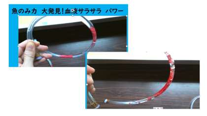 血液をサラサラにしてくれるパワーについて、チューブを使って説明しました。