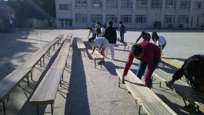 6年生は体育発表会に向けて、椅子の準備をしたり、