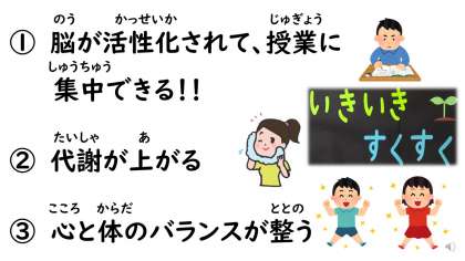 その体操についていいことを、給食ビデオでうたに合わせて紹介しました。