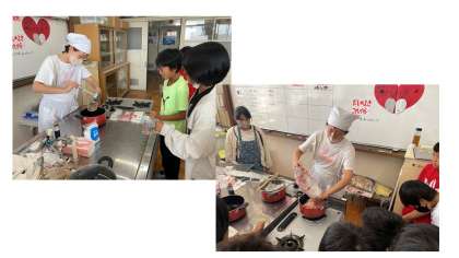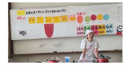 さすが、5年生!「五感」を確認する時、視覚・嗅覚・触覚・聴覚・味覚や!と意見が出ました。いつも目で彩りを味わったり、耳で野菜のシャキシャキ感や、香りを味わったりしているのだと伝わり嬉しい気持ちになりました。