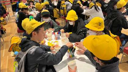 カップに絵を描いたり、スープやトッピングを選んだりしました。