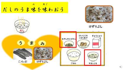 だしのうま味を味わいました。