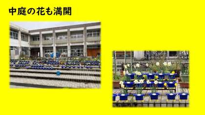 今日は朝からシトシト雨でしたが、久我の杜小学校の中庭のお花は綺麗に咲いていました。