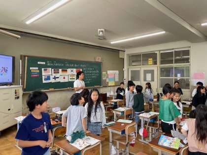 外国語を使って、簡単なゲームとあいさつをしました。盛り上がっていました☆