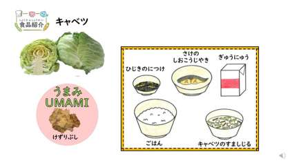 春に美味しいキャベツのすまし汁は、けずりぶしからひいただしのうま味を味わいました。