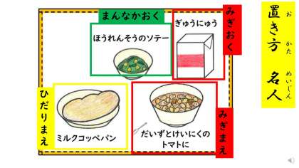 今日もスプーンを使う献立だったので、スプーンや食器の返し方についても注意しながら出来ていました。