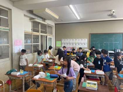 図画工作科では粘土を使って学習しています。作品ができた後は、みんなの作品を鑑賞し合って、「良いね」を伝えあいました。先生に指示されなくても、自分で考えて紙にメモしている人もいました!
