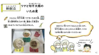 今日は新献立の「ツナと切干大根のいため煮」でした。