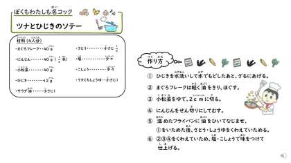 副菜のツナとひじきのソテーは、ツナのうま味と共に海藻のひじきがいただけるので食べやすい献立の一つです。