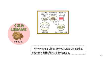 けずりぶしのだしのうま味がしみこんだ「里いもとこんにゃくの土佐煮」でした。こんにゃくにもしっかり味がしみ込み、花かつおのうま味と共においしくいただきました。