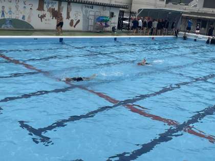 ねらい2では、今できる泳ぎ方で、より長い距離やより速いタイムで泳ぐことにチャレンジしています!距離に挑戦するときには、1m2mでも長く泳げるように何度も挑戦していました。