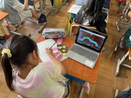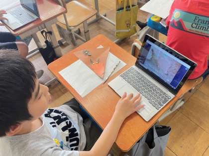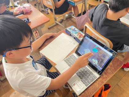 図画工作科でわりピンを使って作品を作りました。みんなの作品をタブレットを使って鑑賞しました。