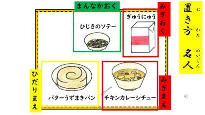 山の家でもこんな感じで食べたな♪なんて話をしながら、仲間と共に食べる給食がいつもと違った場所で楽しく食べてくれていました。