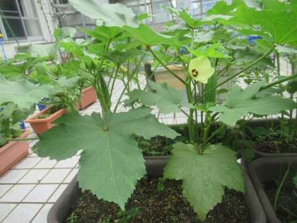 オクラとゴーヤの花が咲いてきました。立派な実もできてきています。収穫が楽しみです!