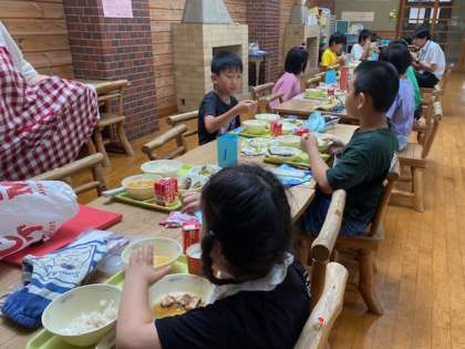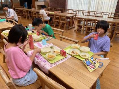 1学期最終日、ランチルームで給食をいただきました。苦手な食材や献立にも、少しずつがんばってチャレンジしてきた子どもたち。暑い夏休みもバランスよく食べて、元気に過ごしてほしいと思います。