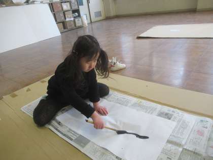 3学期初日に書き初めをしました。いつもより多きな半紙に、力いっぱい書きました。今年の干支の巳を書いたり、「友情」「運動」「部活」などの目標や大切にしたいことを書いたりしました。一人ひとり、思いをこめて書くことができました。