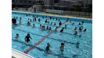 プールを歩いて探検したり、イルカジャンプをしたりしました。