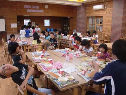 子どもたちには教室とはまた異なる雰囲気で給食体験を