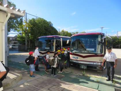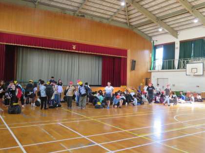 9月2日〜4日、5年生は花背山の家宿泊学習に出かけます。当日の朝、子どもたちは大きな荷物を抱えて、元気に登校してきました。9月になっても危険な暑さが続きますが、対策をしっかりして、2泊3日を楽しんでくれたらと思います。「行ってきまーす!!」
