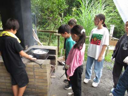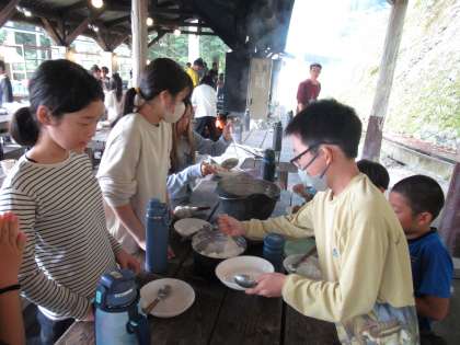 山の家、最後の活動は野外炊事です。