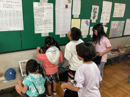 夏休みの自由研究・工作展示を見に行きました。他の学年の人の作品を見ることができるのを、とても楽しみにしていました。使い方を学習したipadで、「素敵!」「来年もやってみたい!」と思う作品を写真に収めながら、作品を鑑賞していました。来年の自由研究・工作の参考になればと思います。