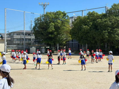 体育館での練習も終わり、今日は初めて運動場にでて練習をしました。位置の確認や移動の練習など、1時間でたくさんのことを覚えました!